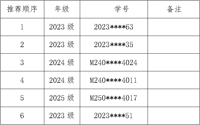各研究生: 根据学校研究生处发布的《关于开展2025年研究生困难补助评定工作的通知》要求,按照《郑州航空工业管理学院研究生困难补助管理暂行办法》(校研〔2014〕13号)文件精神,经个人申请、学院审核与评定,现拟推荐学生公示如下: 公示时间12月1日—12月5日,公示期5个工作日。如有异议,请在公示期内按照以下方式反馈,超过公示期的将不予受理。 学院监督和申诉电话:0371-61912105 学院监督和申诉邮箱:jsj10@zua.edu.cn 计算机学院 2025年12月1日