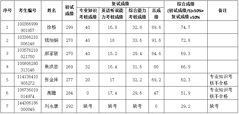 一、140500智能科学与技术第一轮调剂复试综合成绩
